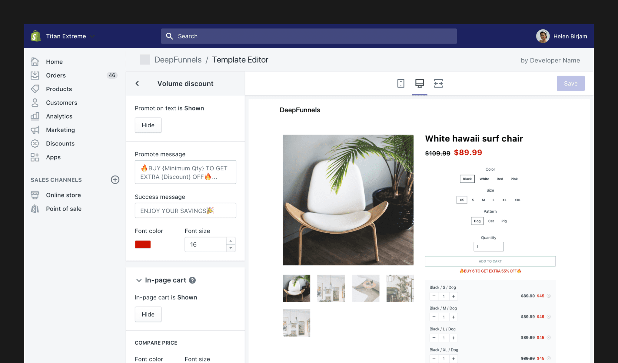 直接使用 Shopify 商品資料,可以客製化價錢、折扣以及加入評價,讓商家能夠快速建立促銷商品