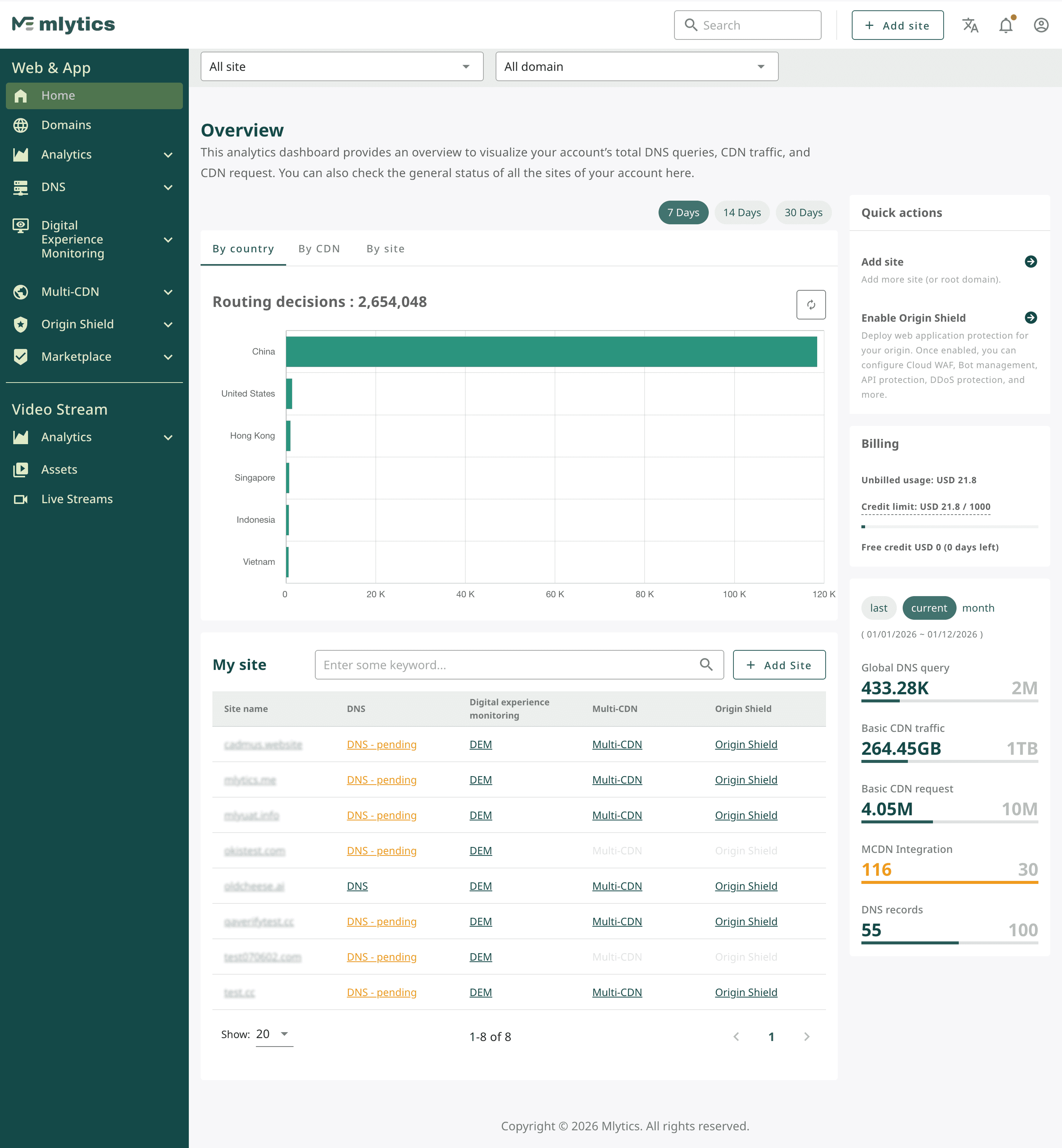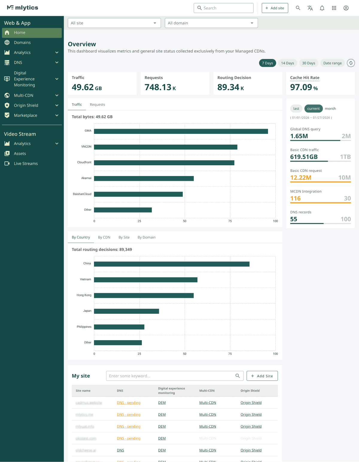 Multi-CDN Dashboard